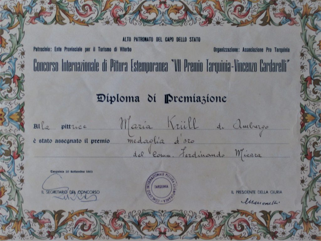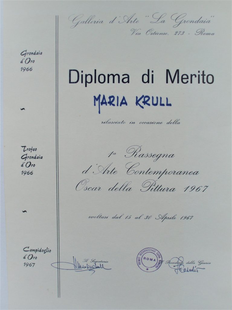 1967 I Rassegna d’Arte Contemporanea “Oscar delle Pittura”, Roma , Diploma di Merito