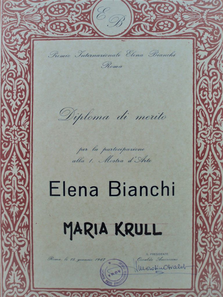 1966 – Premio Internazionale “Elena Bianchi”, Roma, Diploma di Merito