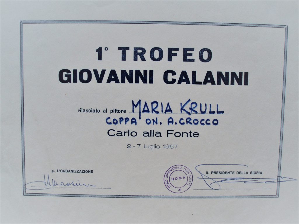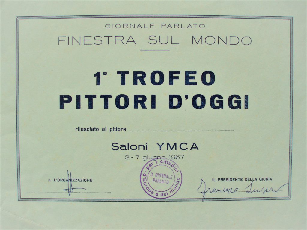 1967 – “Pittori d’Oggi”, Saloni YMCA, Roma, 1° Trofeo