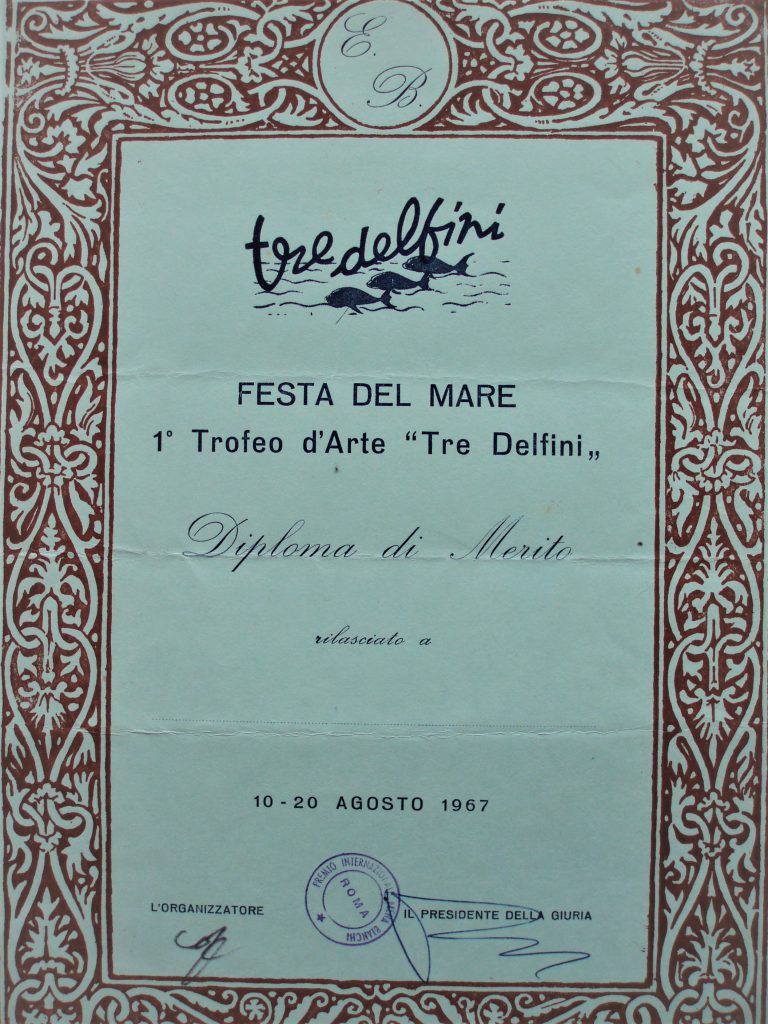 1967 – I Trofeo d’Arte “Tre Delfini”, Roma, Diploma di Merito