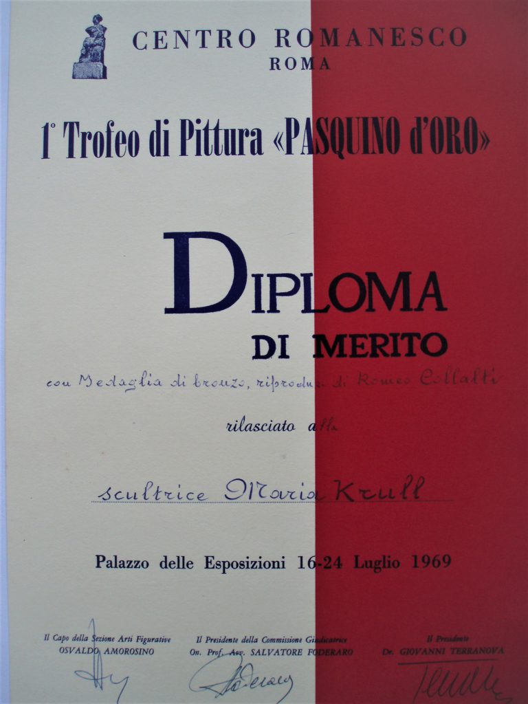 1969 – I Trofeo di Pittura “Pasquino d’Oro”, Centro Romanesco, Roma, Diploma di Merito